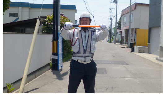 私たちは各種工事、駐車場内の警備や道路清掃業務中の交通誘導警備で